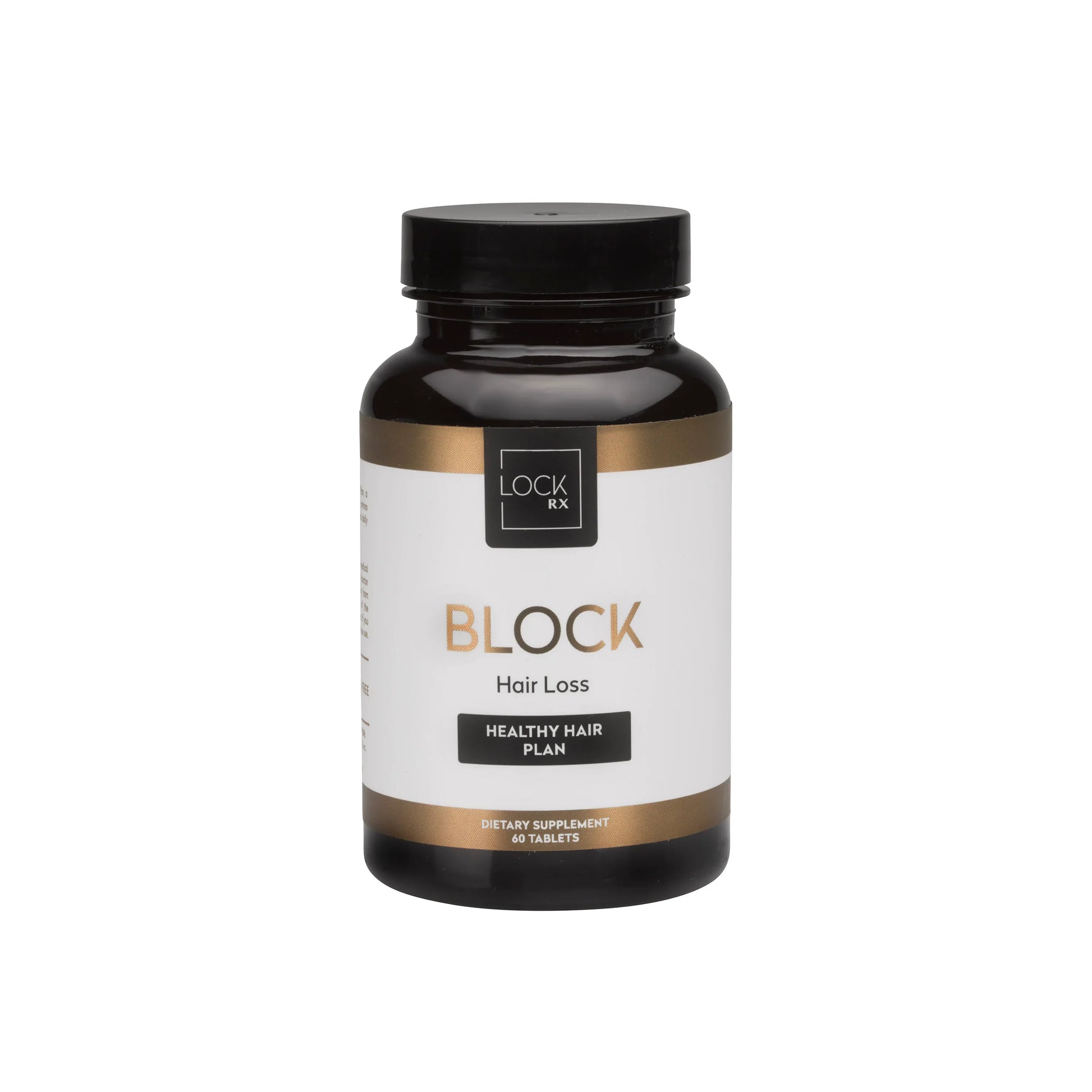 What It Is: BLOCK is a follicle enrichment supplement formulated with the LOCKrx proprietary blend of botanicals, adaptogens, marine collagen, and saw palmetto. These specially selected ingredients are known to support hair growth and help minimize the conversion of androgens into DHT, which is involved with the shrinking process of hair follicles and hair loss.