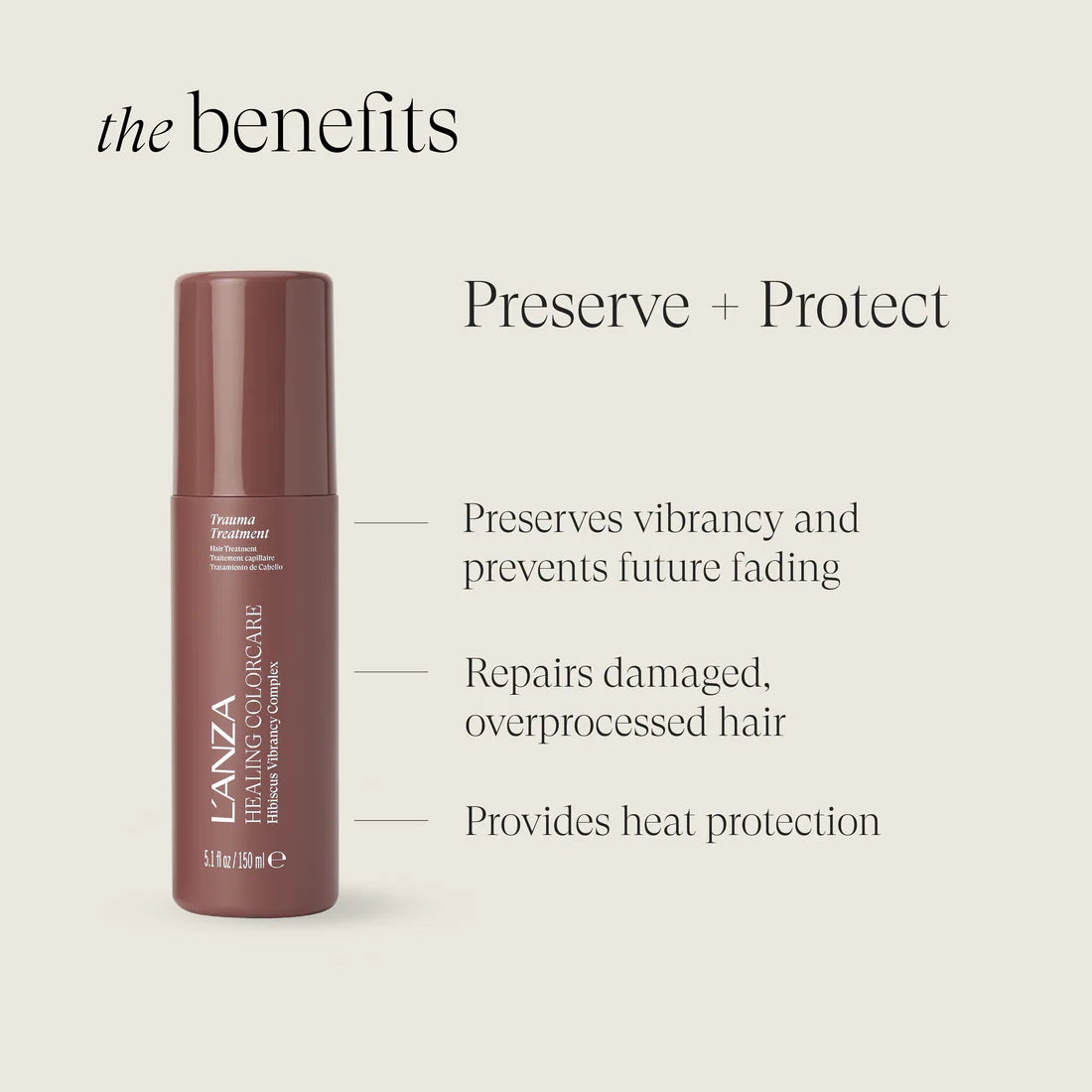 This deep-conditioning leave-in treatment revives overprocessed, damaged hair to heal, protect, and enhance color vibrancy. Powered by the proprietary Hibiscus Vibrancy Complex, it prevents fading and dullness while restoring nourishment to even the most damaged strands.